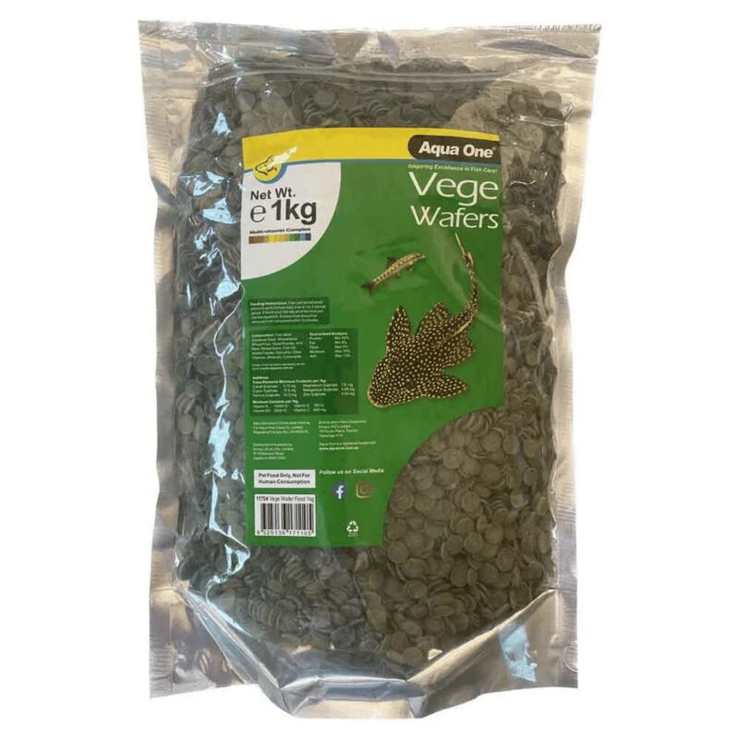 Aqua One Vege Wafers have been specially formulated for herbivorous bottom-feeding fish such as Bristlenose Catfish. High in protein, rich Spirulina, and algae, Aqua One Vege Wafers fulfill the nutritional requirements of all algae grazers whilst providing them with the essential vitamins and minerals they need to thrive within your aquarium.