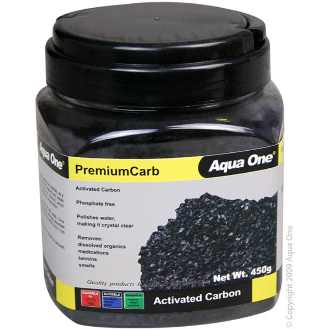 Aqua One Premium Carb is an activated carbon can be used in all types of filtration systems. Aqua One Premium Carb removes dissolved organic waste from aquariums as well as dyes. Premium Carb has a large surface area which absorbs minute particles that are held in suspension in aquarium water. Water passes through the carbon, the carbon then traps small particles in its pores before it is removed by the user.