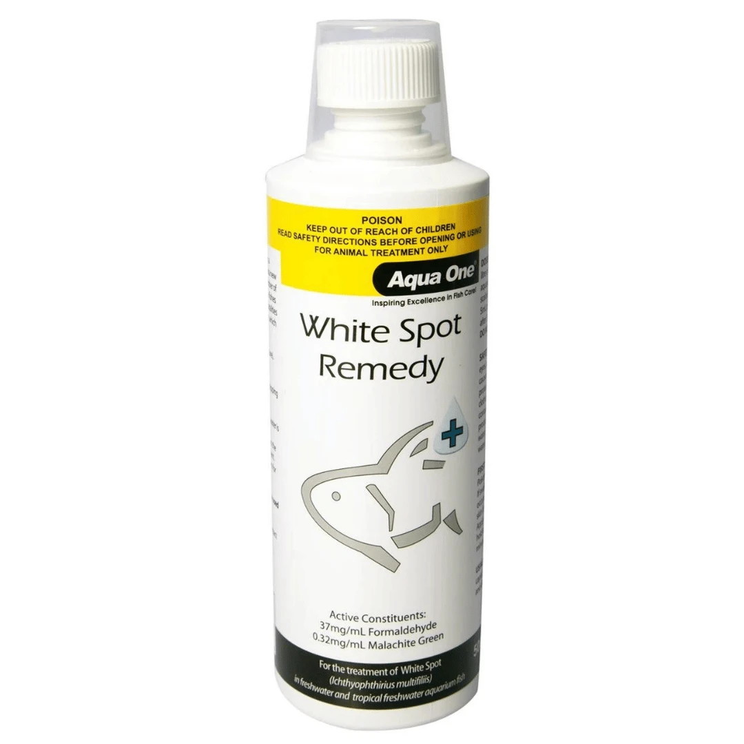 Aqua One White Spot Remedy helps to treat White Spot Disease, a common fish parasite that can enter freshwater aquariums when adding new fish and plants or when fish are stressed. It should be used when the first signs of the disease are observed, such as small white spots (pinhead size) on the body and fins of the fish.