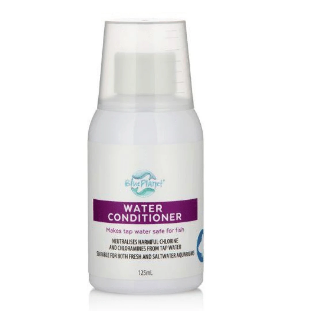 Blue Planet Water Conditioner 125ml neutralises harmful chlorine and chloramines from tap water and ensures your tank/aquarium is suitable for your fish. Water Conditioner works on both freshwater and saltwater aquariums.