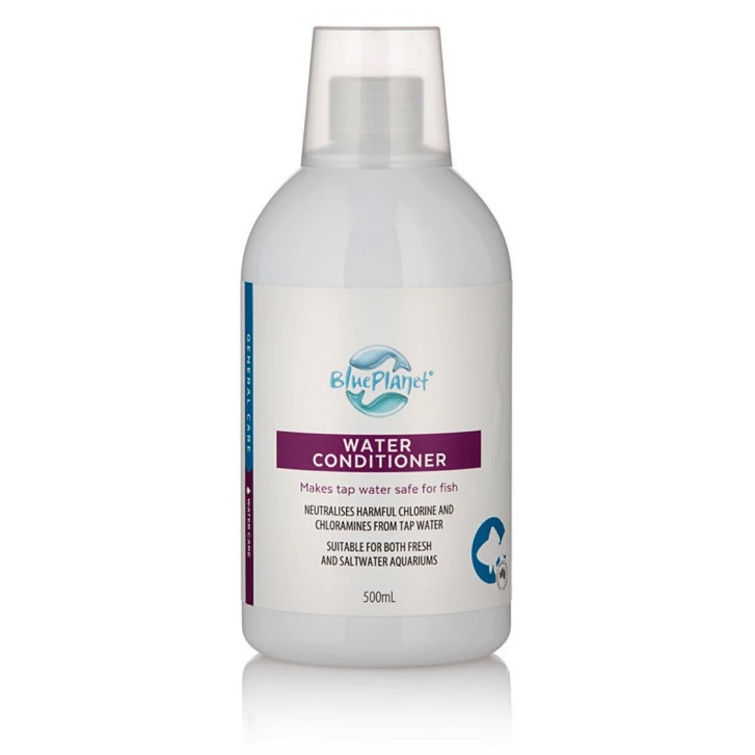 Blue Planet Water Conditioner 500ml neutralises harmful chlorine and chloramines from tap water and ensures your tank/aquarium is suitable for your fish. Water Conditioner works on both freshwater and saltwater aquariums.