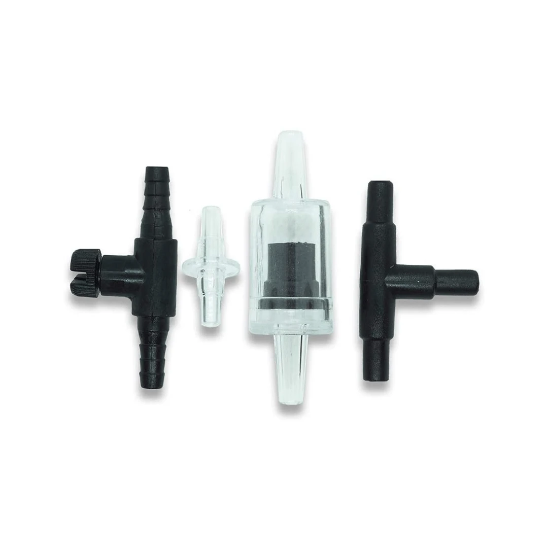 Airline control kit contains 1x check valve, 1x T-Joint, 1x straight joint, 1x control valve.